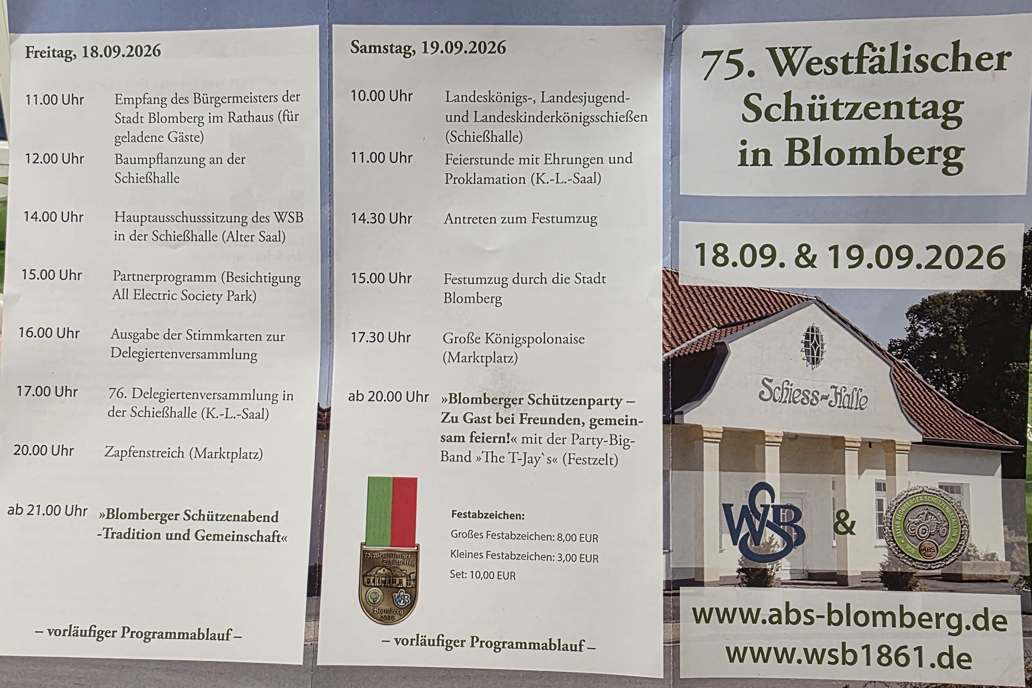 Sa. 18.09.- So.19.09.26   Westfälischer Schützentag  Programm
