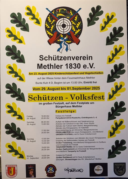 Sa. 23.08.25  Kinderschützenfest und Vogelschießen   Festfolge   Party